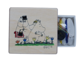 Ett gediget sykit i trä! Två olika motiv, här med tryck av Lilla My. En liten ask skjuts ut ur träfodralet. Där finns nål, tråd i flera färger, ett par knappar.