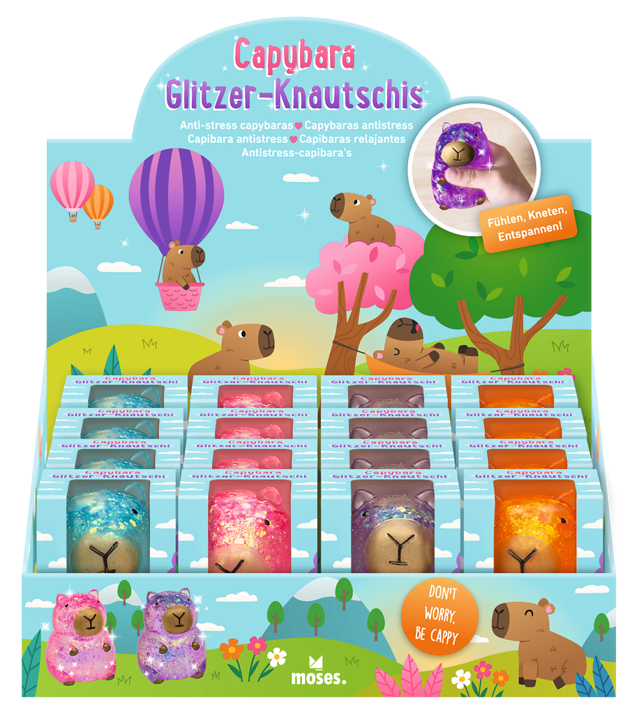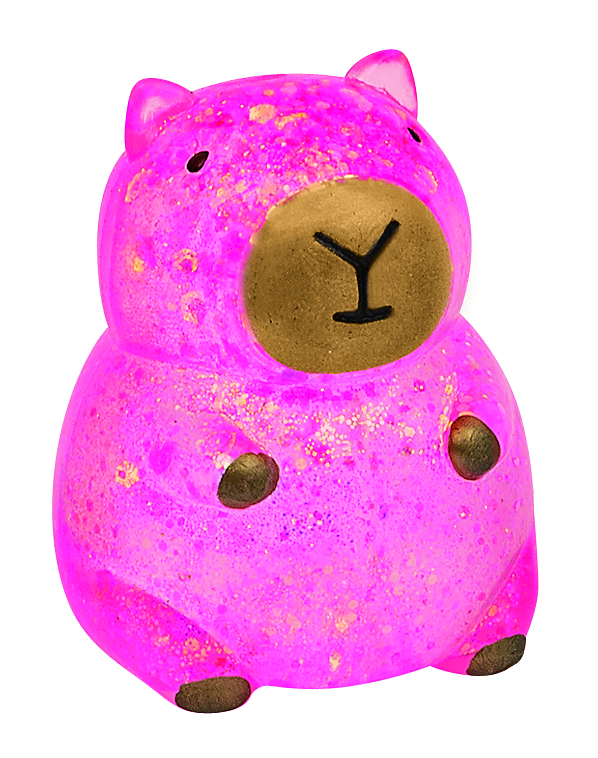 Dags att varva ner! Ta en stund och kläm på den här roliga anti-stressen i formav det populära djuret Capybara och känn hur stressen rinner av dig. Fyra olika färger i display.