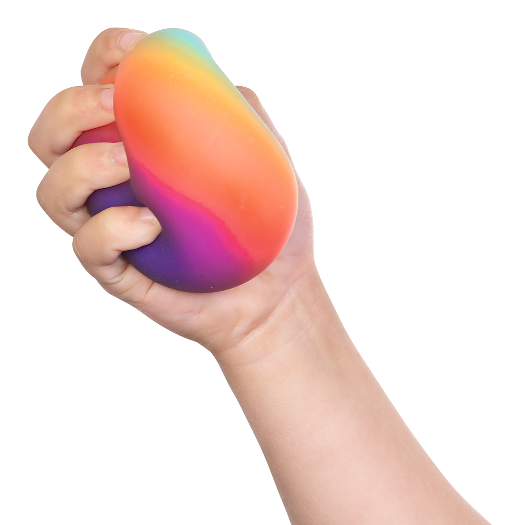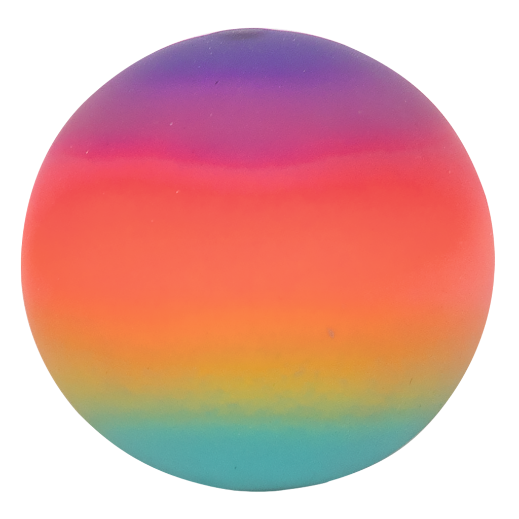 Dags att varva ner! Ta en stund och kläm på den här mjuka bollen och känn hur stressen rinner av dig. Bollen är i regnbågsfärger.
